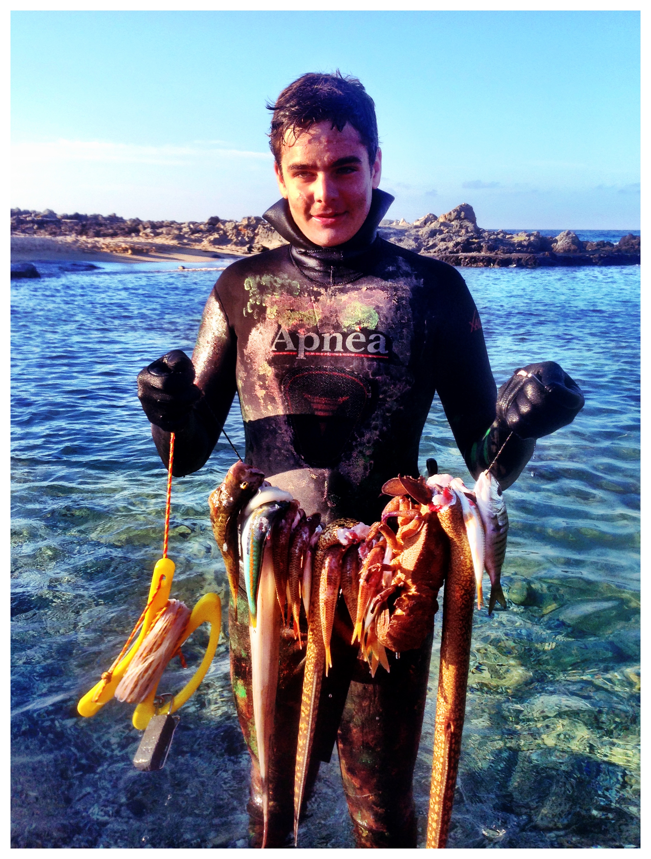 Later that evening, on the beach by Zorbas, we sat enjoying the last few drops of the evening sun & I noticed two young lads who had been snorkelling came ashore with a harpoon. So me being nosy/ inquisitive & always with camera at the ready, I went over to investigate.