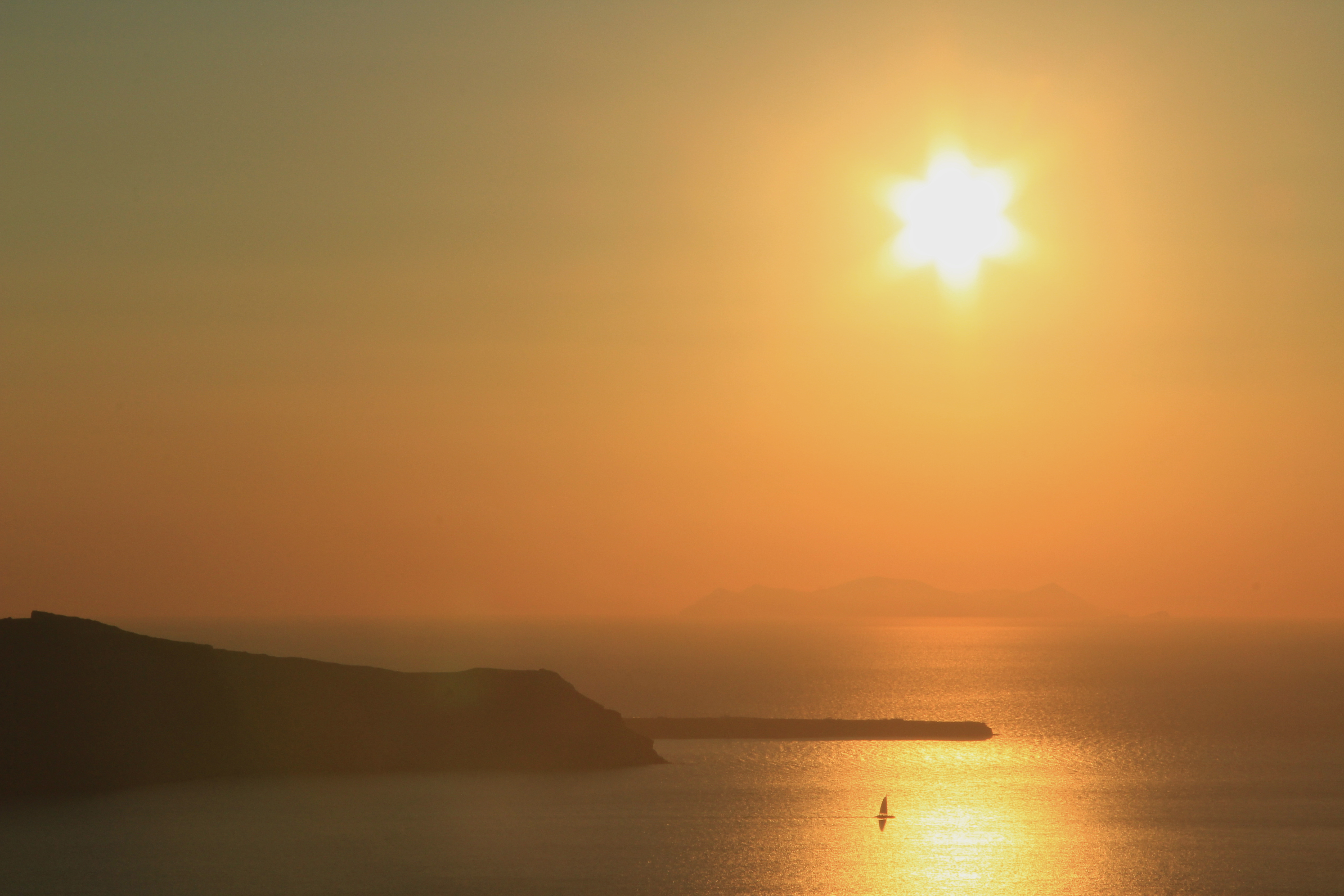 The sun begins to sink, slowly at first; the colours change in the sky, the sea calms and we polished off our first bottle of wine before starting a second. Once it’s low, the sun soon drops, as if someone has pressed the fast-forward button, but even then, after sundown, the display continues; the colours become deeper and more intense, rich hues of red in the sky against the silhouettes of neighbouring villages and the islands in the distance.