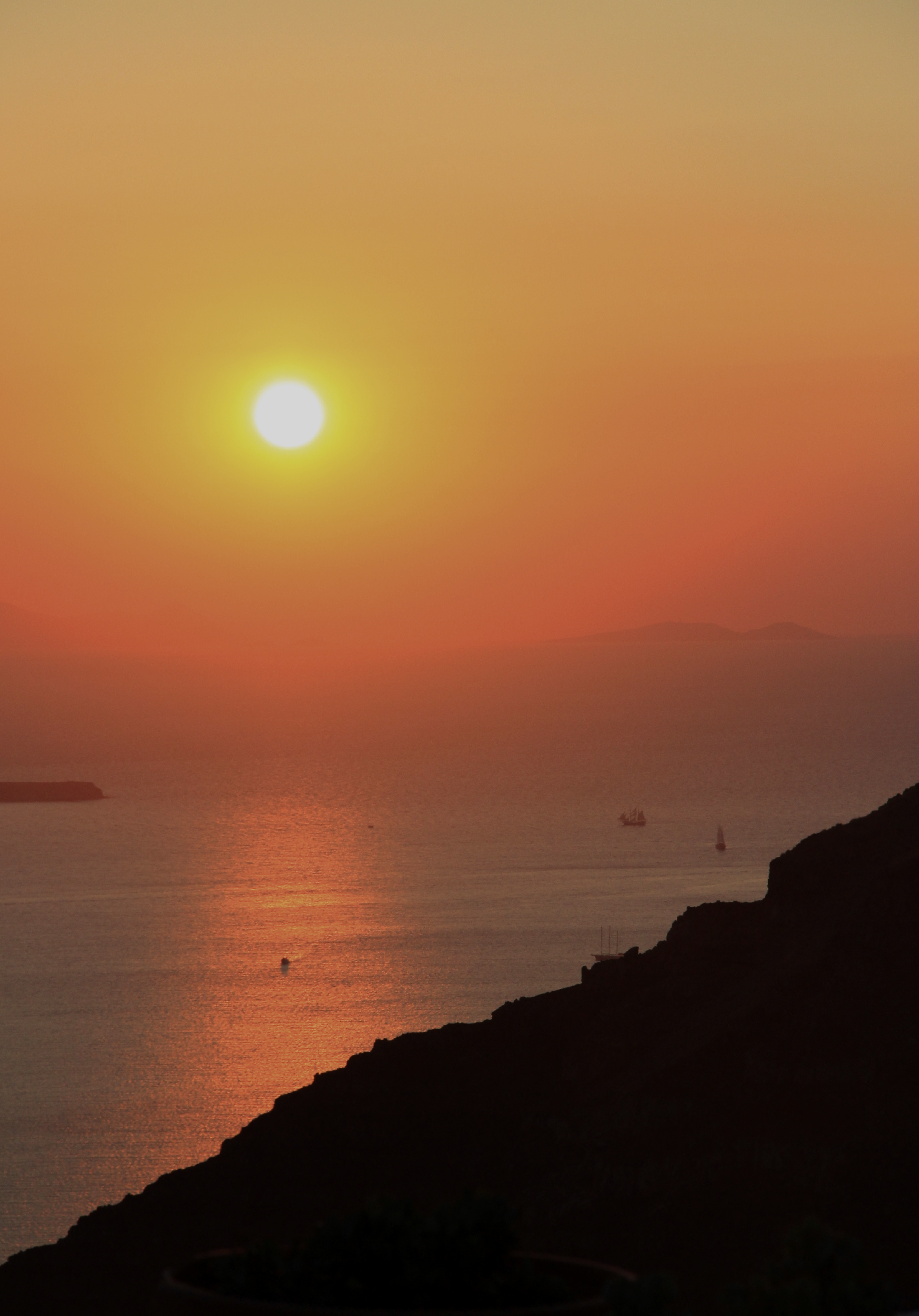One favourite silhouette of mine is – Skaros Rock. We climbed this on our last visit – it was a little hard going, but totally worth it for the view; both out into the caldera and back toward the island as it bathes in the reflection of light and colours from the sea and sky.